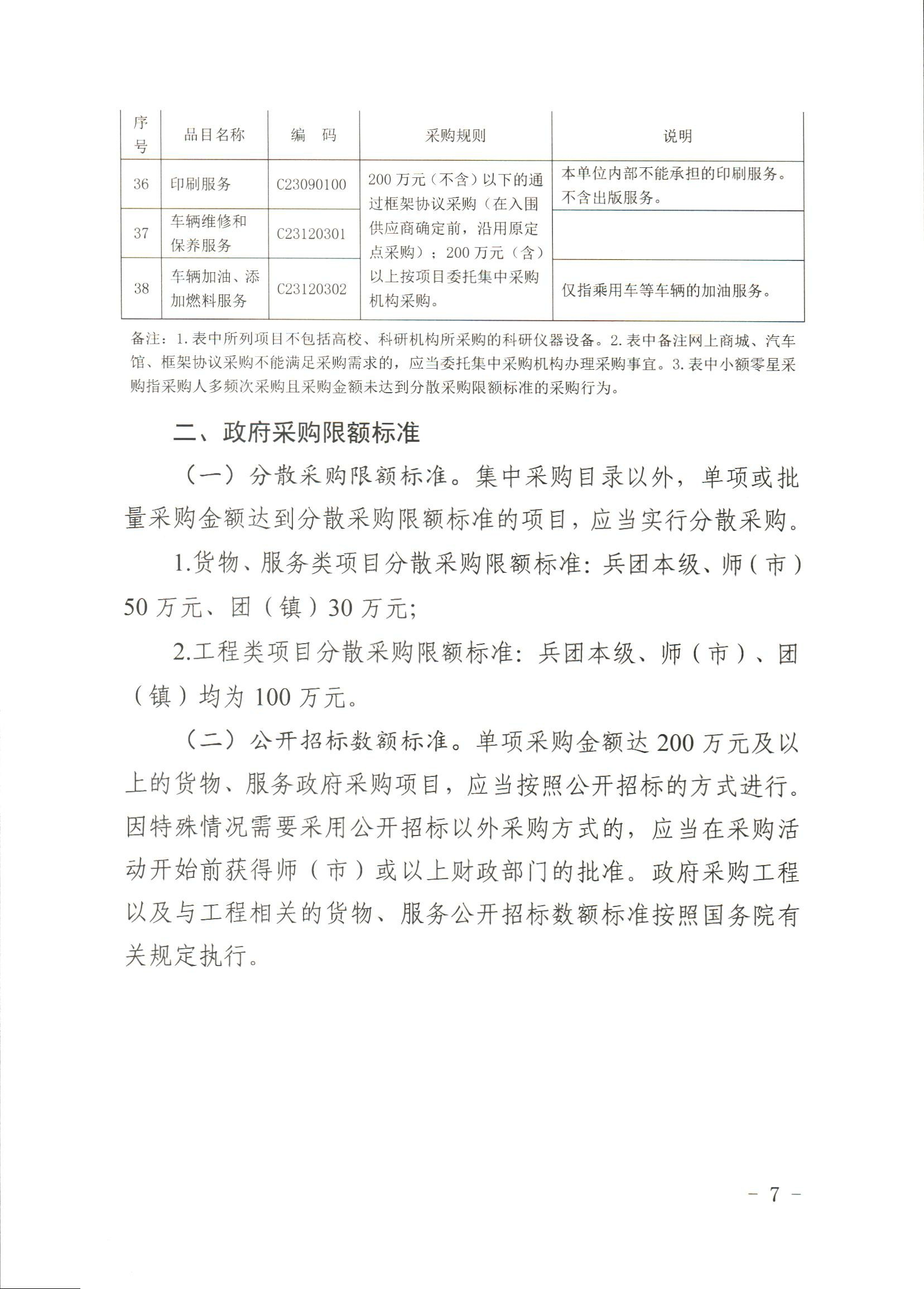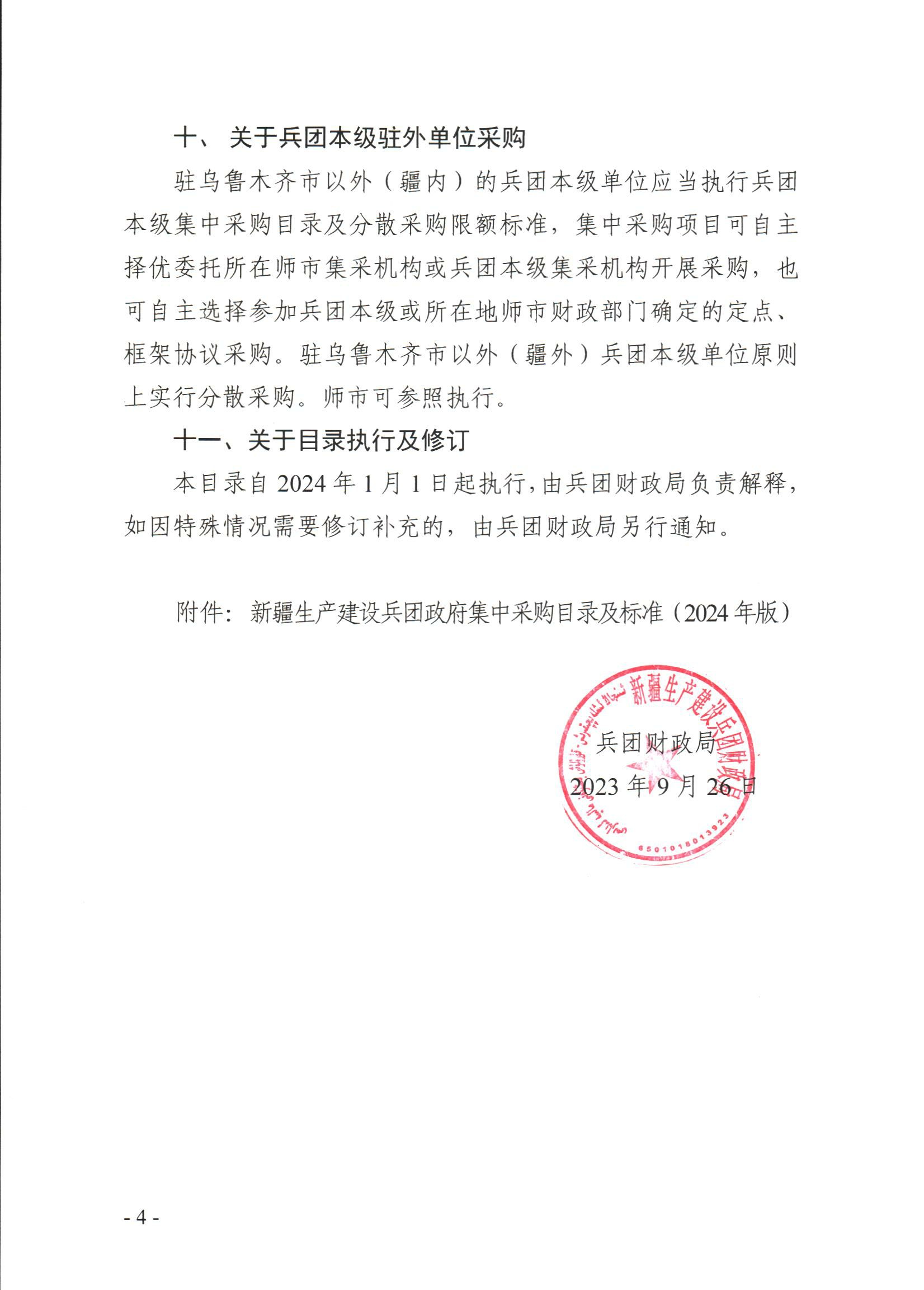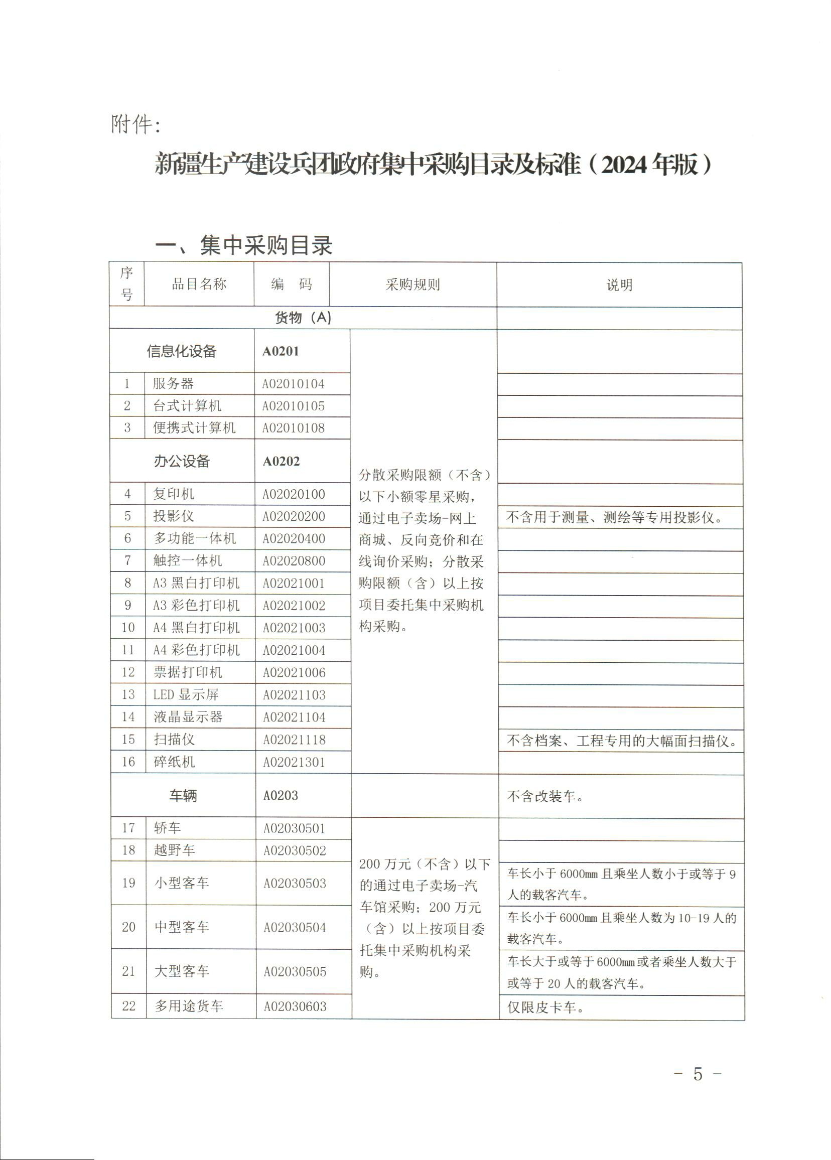 新疆生产建设兵团政府集中采购目录及标准(2024版)