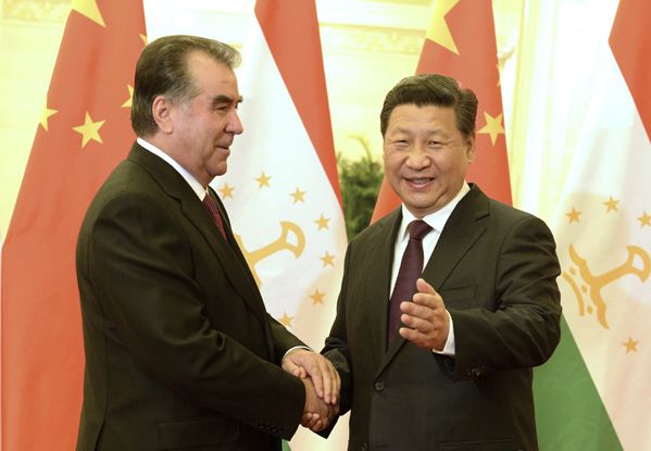 11月7日下午,在人民大会堂,习近平主席热情相迎,两位老朋友热烈握手。相对而坐,两位老友愉快地回忆起杜尚别的难忘时光。拉赫蒙总统说,今天再次见到老朋友,我感到格外高兴。习主席说,我愿意同你继续保持密切接触,为两国合作作出规划并推动落实……
