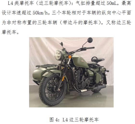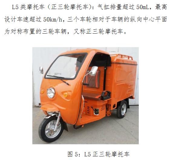 按照GB/T 15089-2001《机动车辆及挂车分类》,摩托车被定为L类,又分为L1-L5个小类,以燃油驱动为例:
