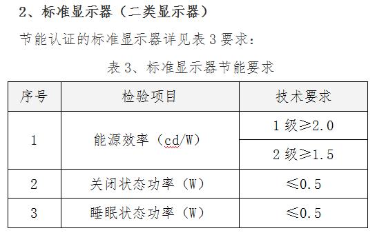 能同时满足(1)对比度在60:1时,水平视角不小于160°,(2)固有分辨力不低于270万像素数,(3)色域不小于75%等三个条件的显示器。节能认证的高性能显示器详见表1、表2要求: