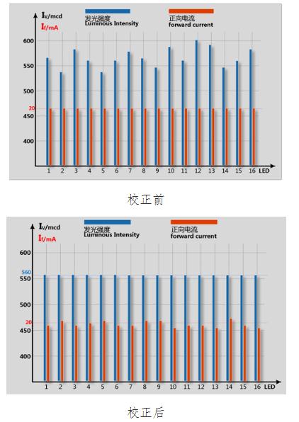 7、单点亮度和色度校正技术:用不同电流把原本不同亮度的LED使之亮度一致。此技术为显示屏良好一致性的保障。