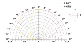 8、视角:假定显示屏法线方向的亮度为LF,从显示屏中心法线左右两侧检测显示屏的亮度,当左右两侧亮度值下降到LF/2时,两条观测线之间构成的夹角θS(θS<180°)称为显示屏水平方向的视角。从显示屏中心法线上下两侧检测显示屏的亮度,当上下两侧的亮度值下降到LF/2时,两条观测线之间构成的夹角θC(θC<180°)称为显示屏垂直方向的视角。